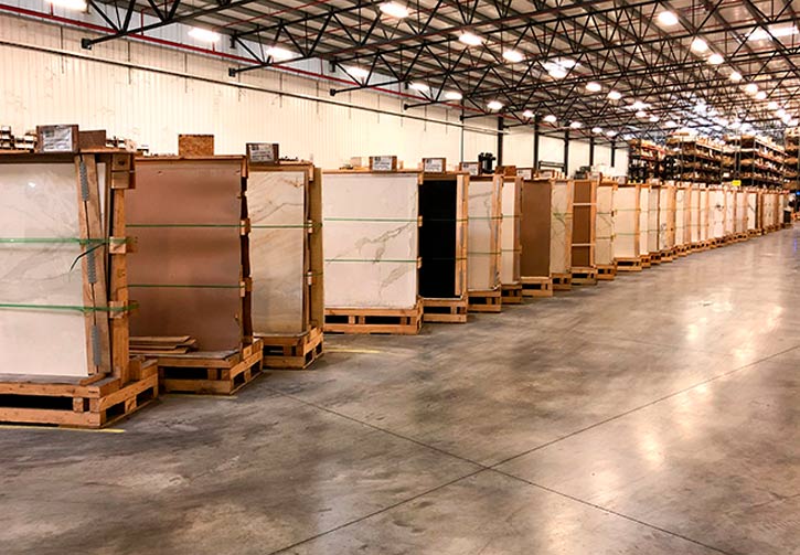 On ceramic slabs, the design appears in the glaze on the surface, so if the slab splinters, you can see the color of the body underneath. However, since porcelain slabs have full body designs, cracking and chipping are not a problem for them. It breaks or splinters, the same design shows.