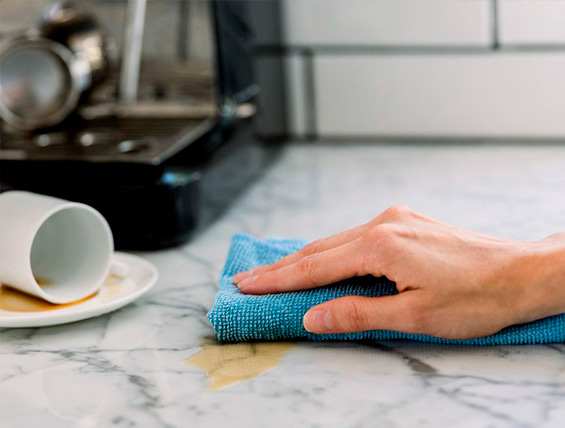 For wine, oil, coffee or lemon stains, which are so worrying when talking about kitchen countertops, simply apply a common or dishwashing detergent and you'll be done with them.